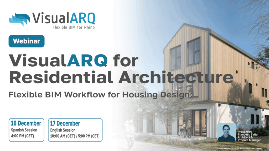 Join us for a new online session where we will explore how VisualARQ 3 can enhance residential architecture workflows inside Rhino. Whether you design single-family houses, villas, or multi-unit residential buildings, VisualARQ provides a flexible BIM environment that helps you move seamlessly from early concept models to precise project drawings.